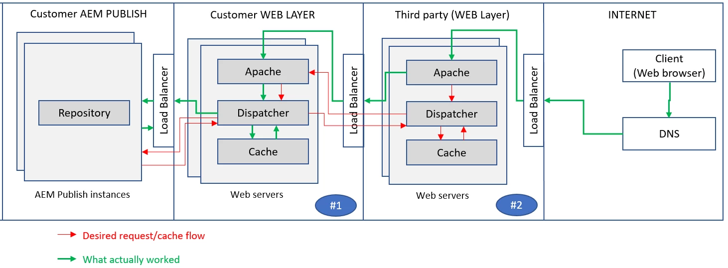 If you look closely, this is a different-than-regular scenario with 2 web servers in the request path. Usually we have just one web layer load balancing AEM publish instances.