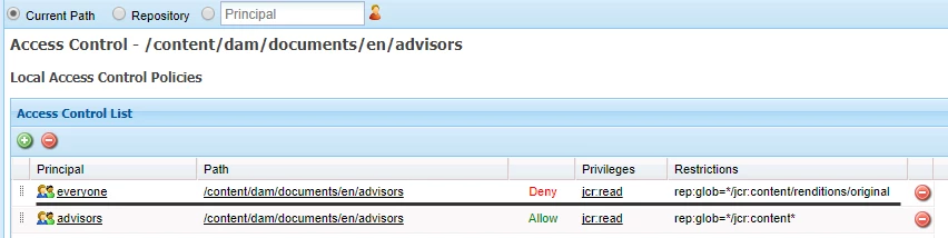 This ACL (shown above) lets me access the document's properties (document title) with anonymous access.