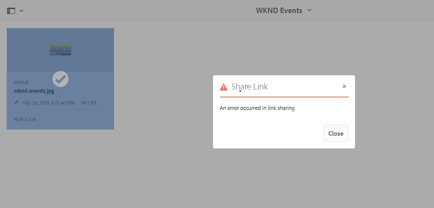showing error while sharing link of a Asset