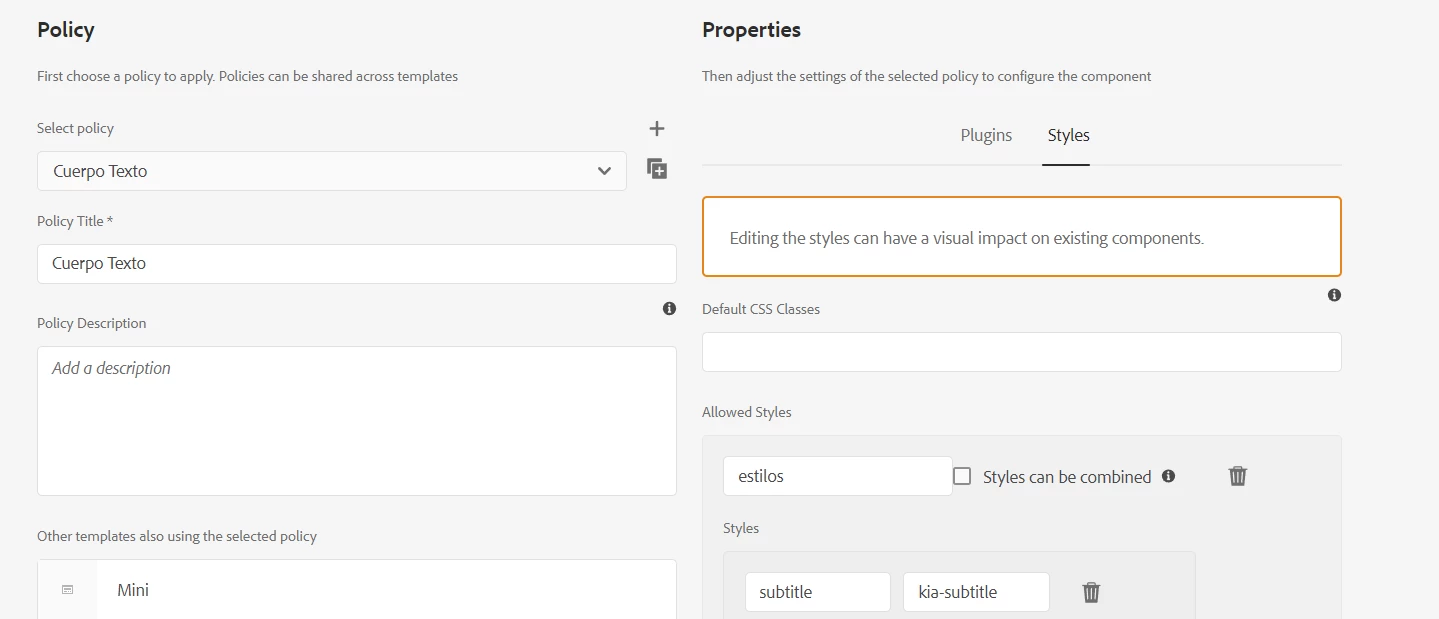 I have a text component on a template: