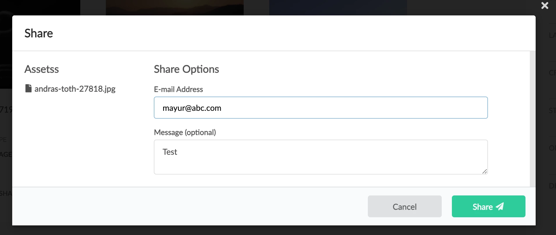 I was testing email share feature of asset -share-commons.