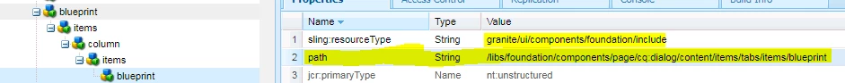 How do we include "BluePrint" tab from foundation page component in touch ui?