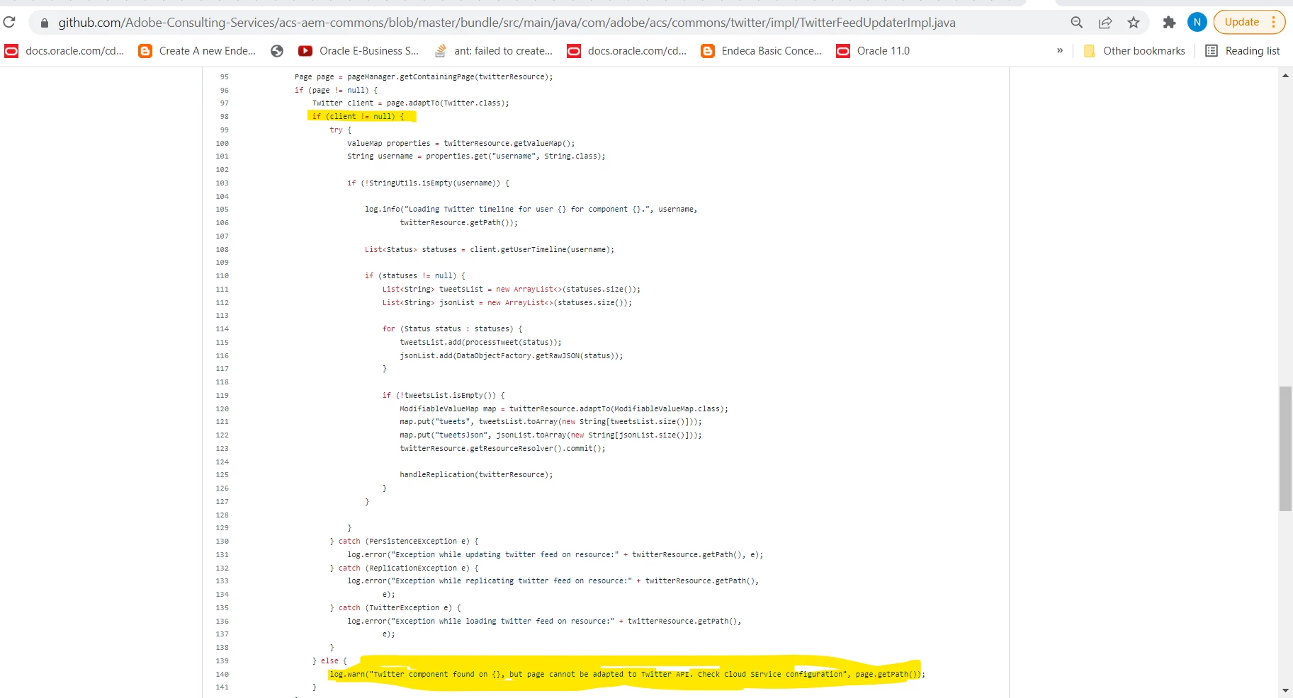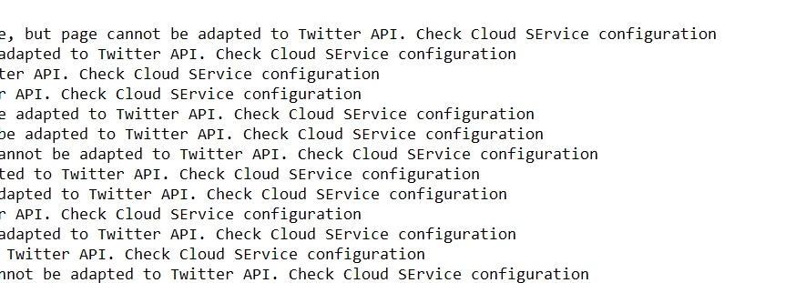 [sling-default-4-com.adobe.acs.commons.twitter.impl.TwitterFeedScheduler.34311] com.adobe.acs.commons.twitter.impl.TwitterFeedUpdaterImpl Twitter component found on /content/my-Project/en/configurations/twitter/commission, but page cannot be adapted to Twitter API. Check Cloud SErvice configuration
