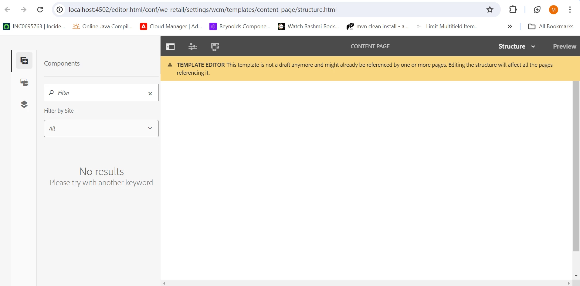 I have created a new project using maven archetype49. I am trying to check the template available, I do not see any layout container to add components in the template or pages. I am unable to edit anything.