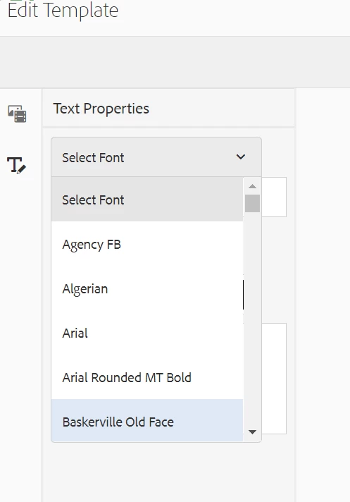 I am working on a use case -->Indesign template editing inside AEM, where I need to control the display of font in the edit template dropdown.