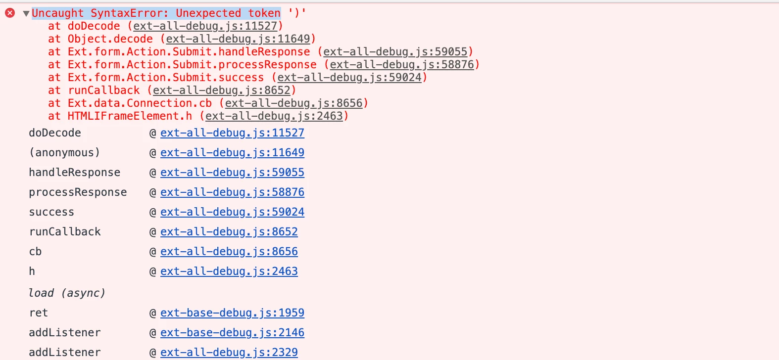 While uploading/building/any other operation on package manager, I see following JS error in the console and hence it gets stuck.