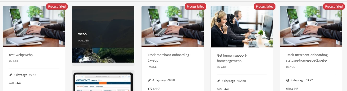 WebP images process failed in assets AEMAACS