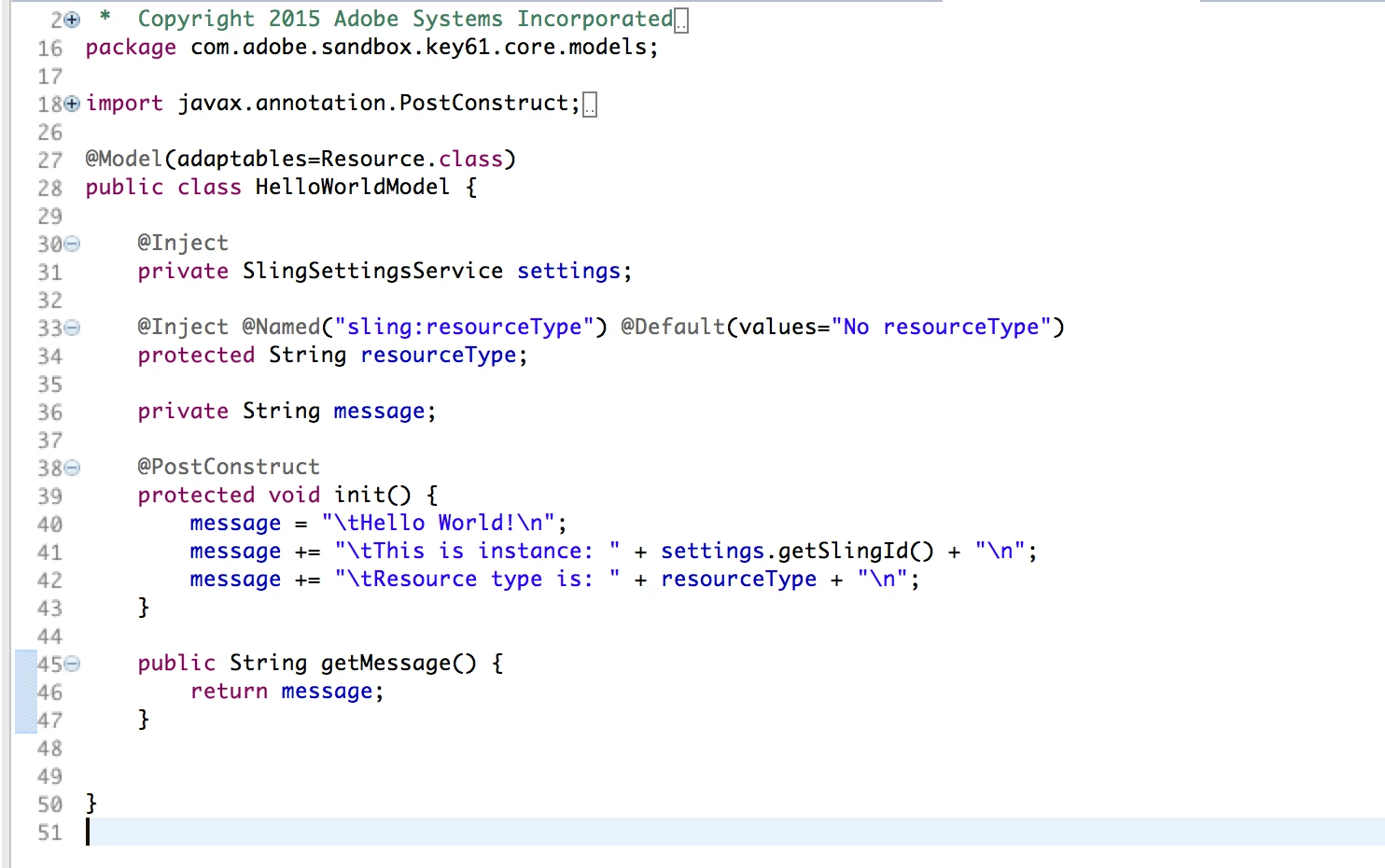 In AEM, I understand the meaning and usage of Component and Service, but now I found that another term Model, I don't get it? Such as I create new AEM project based on maven archetype 10, there is default Model get created, the source code is as the following: