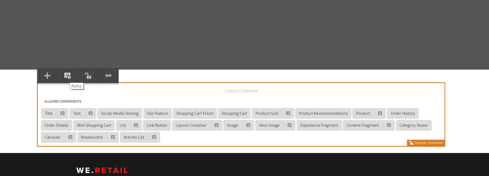 If you attempt to use Design Mode for We Retail in order to add new components (or other sides based on Editbale Templates), you will notice that Design mode is not there.
