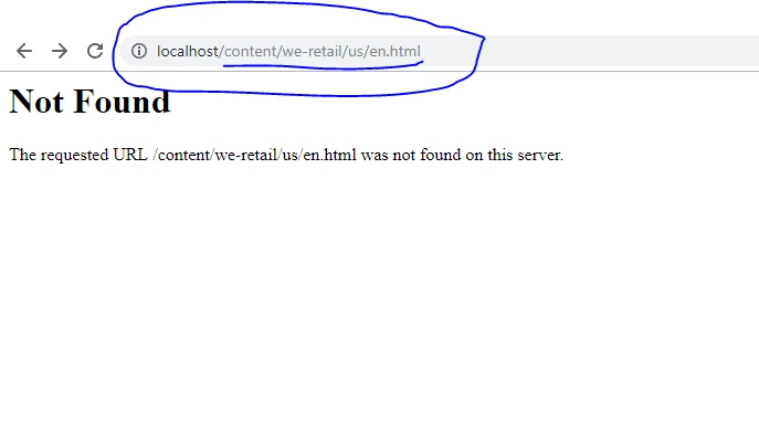 When i am trying to connect the apache server with the publish 4503 for dispatcher. when i am hitting localhost:80/content/we-retail/us/en.html after starting publish instance . then i am getting this 404 error .