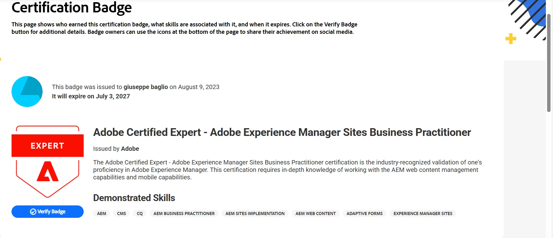 Will there be any certificate issues for Adobe Experience Manager Practitioner course? Or only badge is available? Please let me know. It will be good if you can issue as certificate so that we can use it for corporate reimbursement purpose.