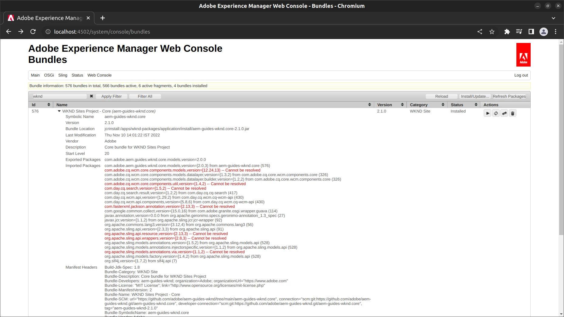 I am using AEM as a cloud service. After installing WKND Site v2.1.0 from github
