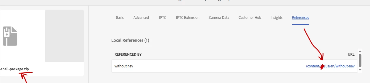 ZIP file referencing not showing in metadata references