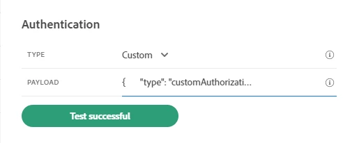 As soon as you save, Journey Orchestration will send a test API call. If the authentication were successful, you would get a Successful Test message like below