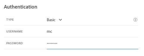 { “type”: “customAuthorization”, “authorizationType”: “Bearer”, “endpoint”: “https://<<ORG_TENANT_ID>>.adobeioruntime.net/api/v1/web/acc4jo-0.0.1/getACCSessionToken”, “method”: “POST”, “headers”: { “Authorization”:”Basic EncodeBase64(<<User Name of MC Operator>>:<<Password of MC Operator>>)” }, “body”: { “bodyType”: “form”, “bodyParams”: { “accIntanceURL”:”<<ACC MC Instance URL>>” } }, “tokenInResponse”:”json://sessionToken”, “tokenTarget”: “sessionToken”, “cacheDuration”: { “duration”:86399, “timeUnit”:”seconds” } } -