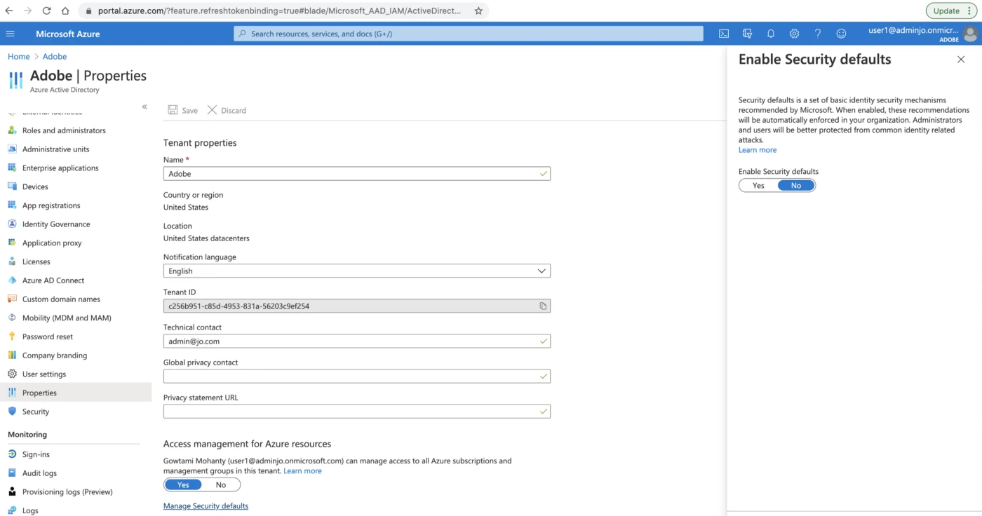 Important Note: Azure Multi-Factor Authentication(MFA) works by requiring multiple forms of verification to prove your identity when signing into an application. You need to disable the same to proceed else you will be thrown errors such as this in Experience Platform and Journey Orchestration applications.