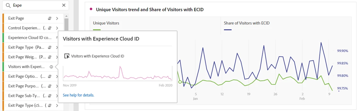 Finally, validate that all your domains are set up with the ECID: in your Page Domain report, compare "Unique Visitors" and "Visitors with Experience Cloud ID" (Figure 1). Note that if you don’t see the metric "Visitors with Experience Cloud ID", make sure you have mapped your report suite to your Org ID.