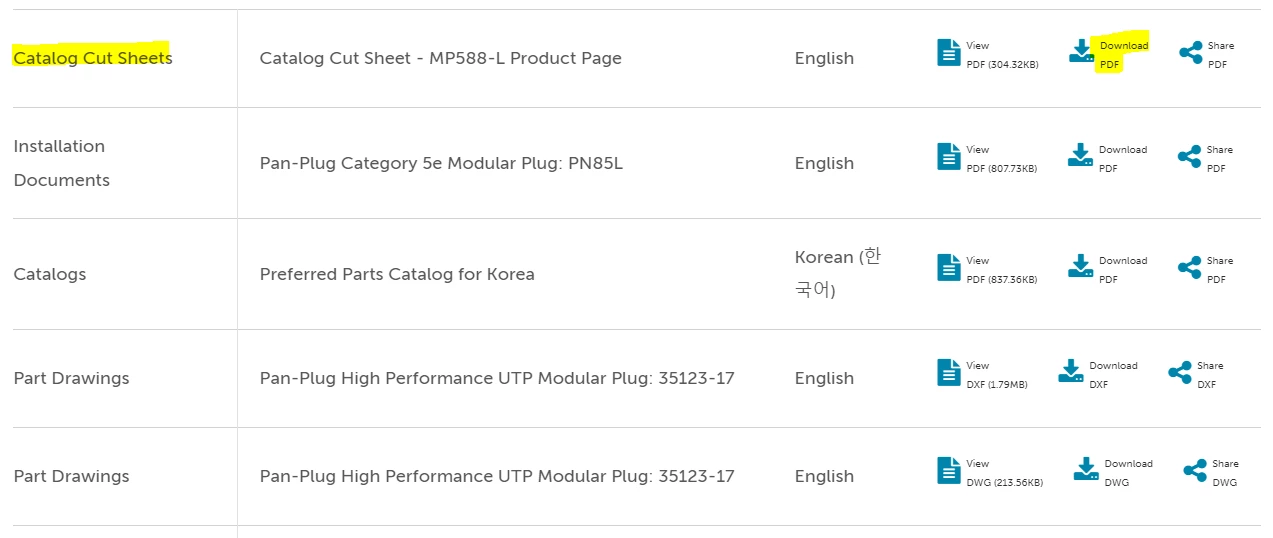 Example Product Page: https://www.panduit.com/en/products/copper-systems/connectors/modular-plugs/mp588-c.html