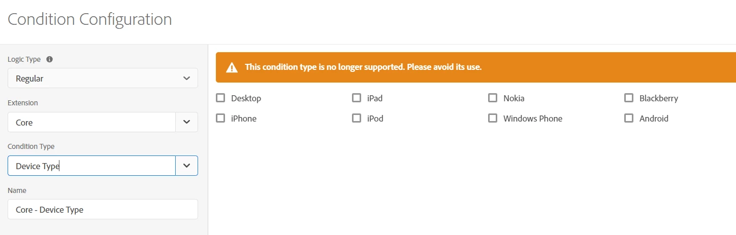 Thanks for the question Dave.hamel. The reason the Device Type condition is no longer supported is largely because the definition of certain "device types" has become very blurry in recent years. For example, what do you consider "desktop" these days?