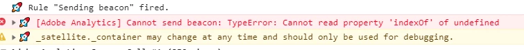 Error : [Adobe Analytics] Cannot send beacon: TypeError: Cannot read property 'indexOf' of undefined
