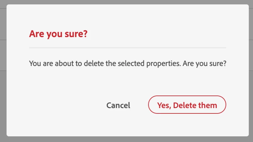 It would be helpful if the deletion dialog window indicated the property name(s) so the user will make sure that only the expected property(ies) will be deleted upon confirmation. This is helpful for the accounts with high number of properties where accidentally more than one checkbox may be selected.