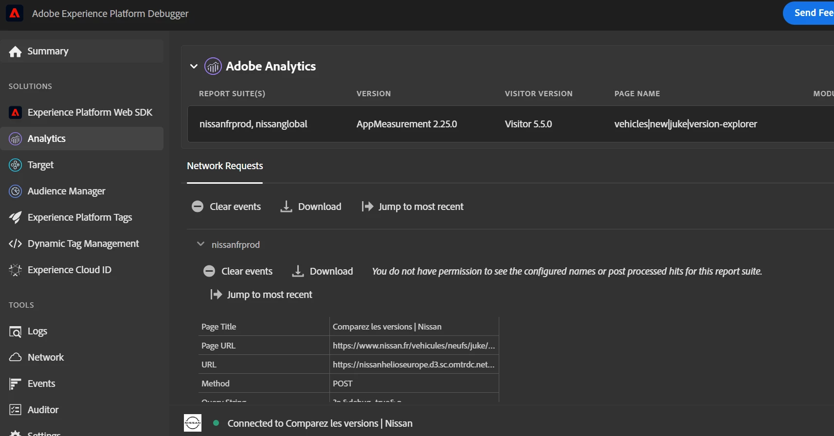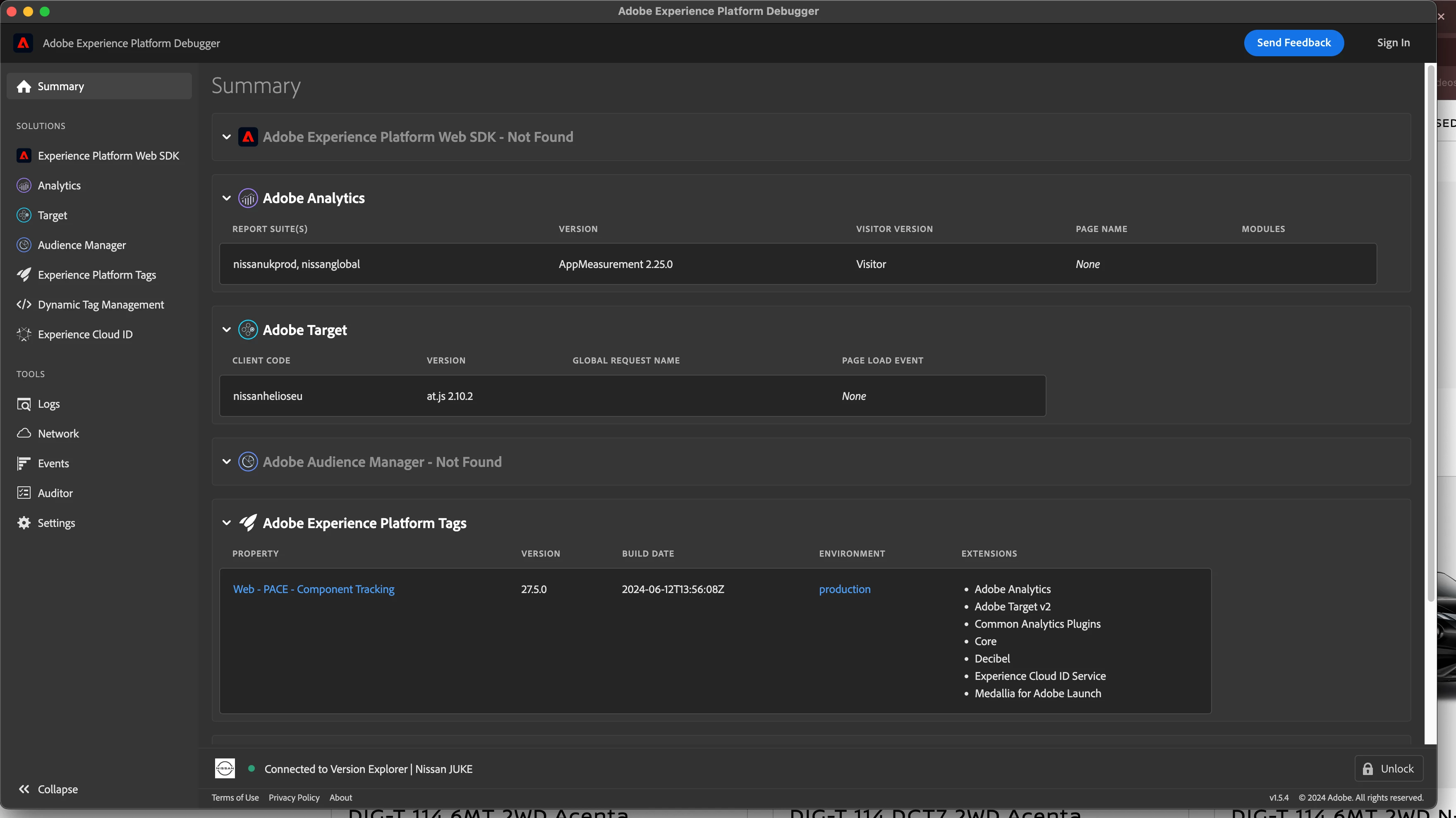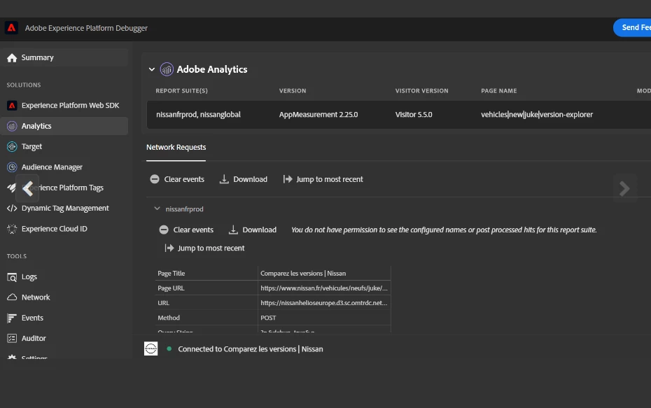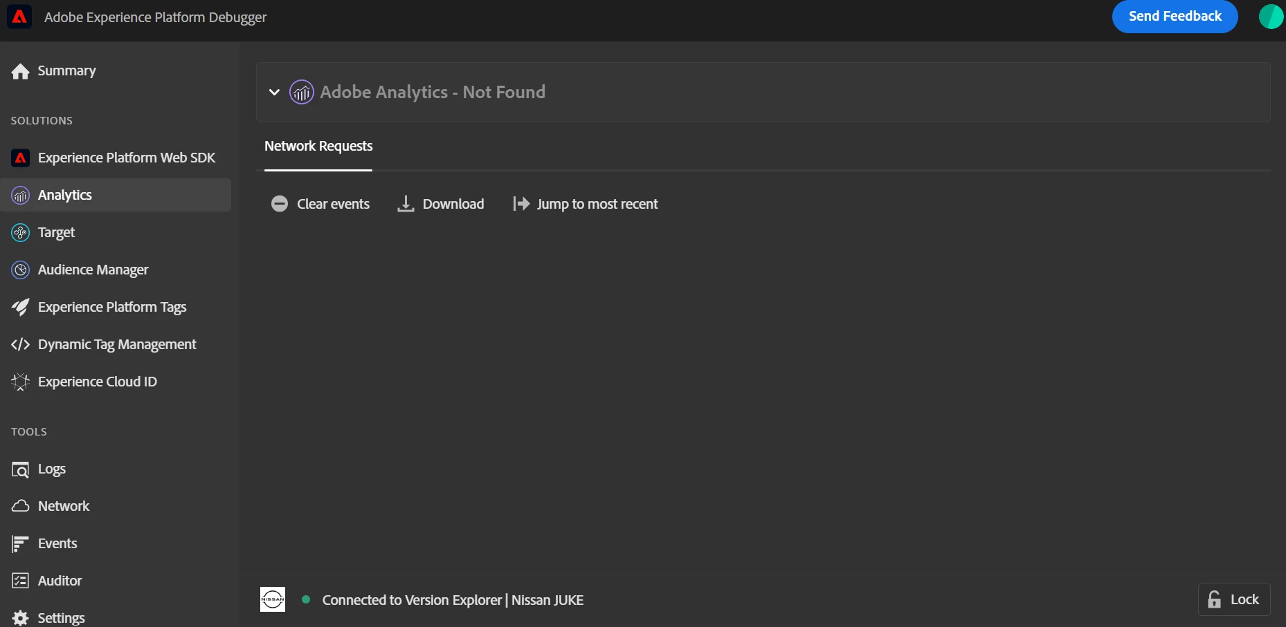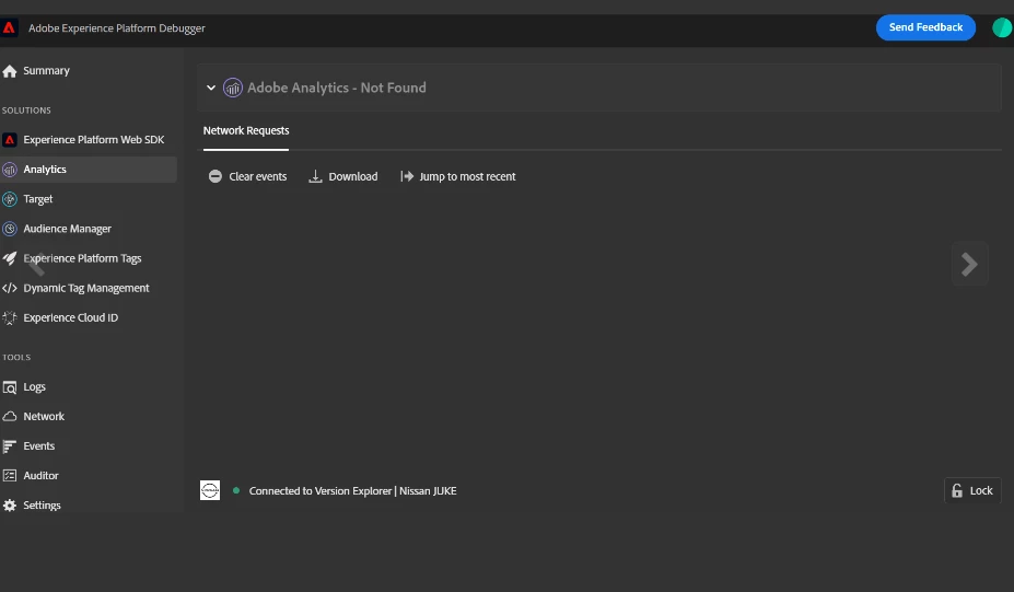 Below page (UK) is not getting fetched in the Adobe analytics Debugger. The debugger is connecting but nothing is showing up.