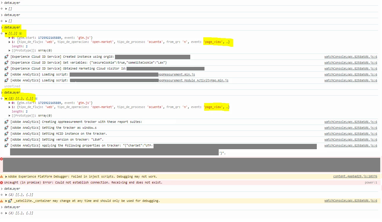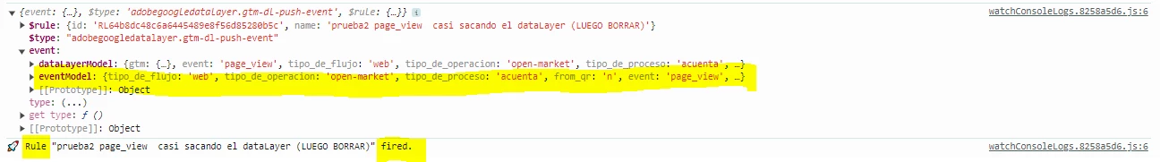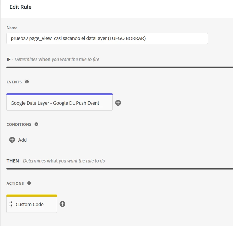 * I tried to use the Google Data Layer and Adobe Client Data Layer extensions to try to get it to recognize all the changes in the dataLayer for the page_view event but I couldn't solve the problem, maybe I didn't know how to configure it (I'm just getting to know the tool so I'm far from be an expert in Adobe Launch)