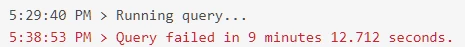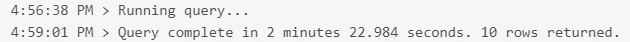 Description - A simple query takes an unexpectedly long time to complete. See examples below. This indicates that AEP Queries is just not ready for widespread, "production" use, really.