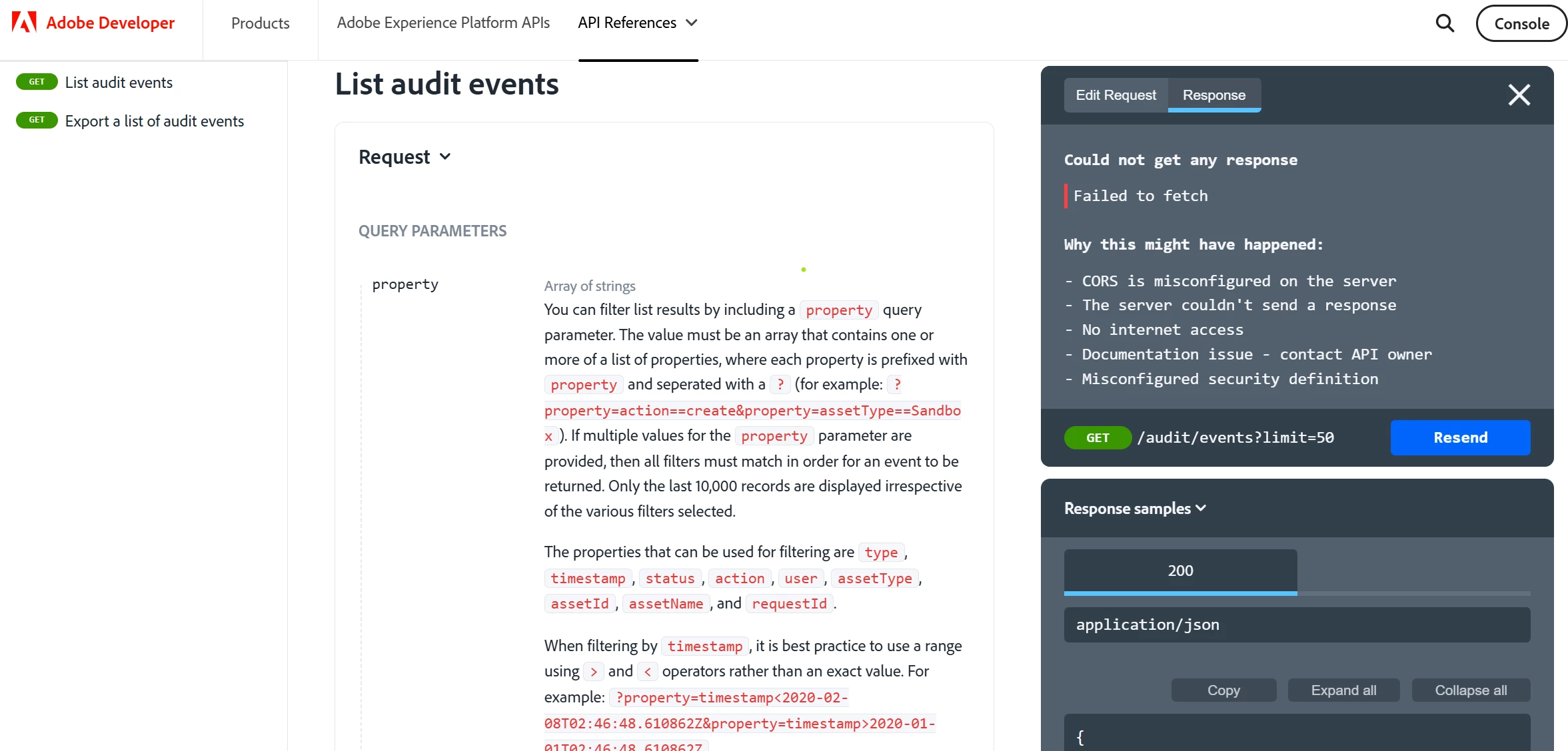 I am using the Audit Events endpoint (https://experienceleague.adobe.com/en/docs/experience-platform/landing/governance-privacy-security/audit-logs/audit-api/events) and passing all the required parameters in the Workfront Fusion scenario. However, I am encountering a 403 error. The same credentials work fine for retrieving audiences.