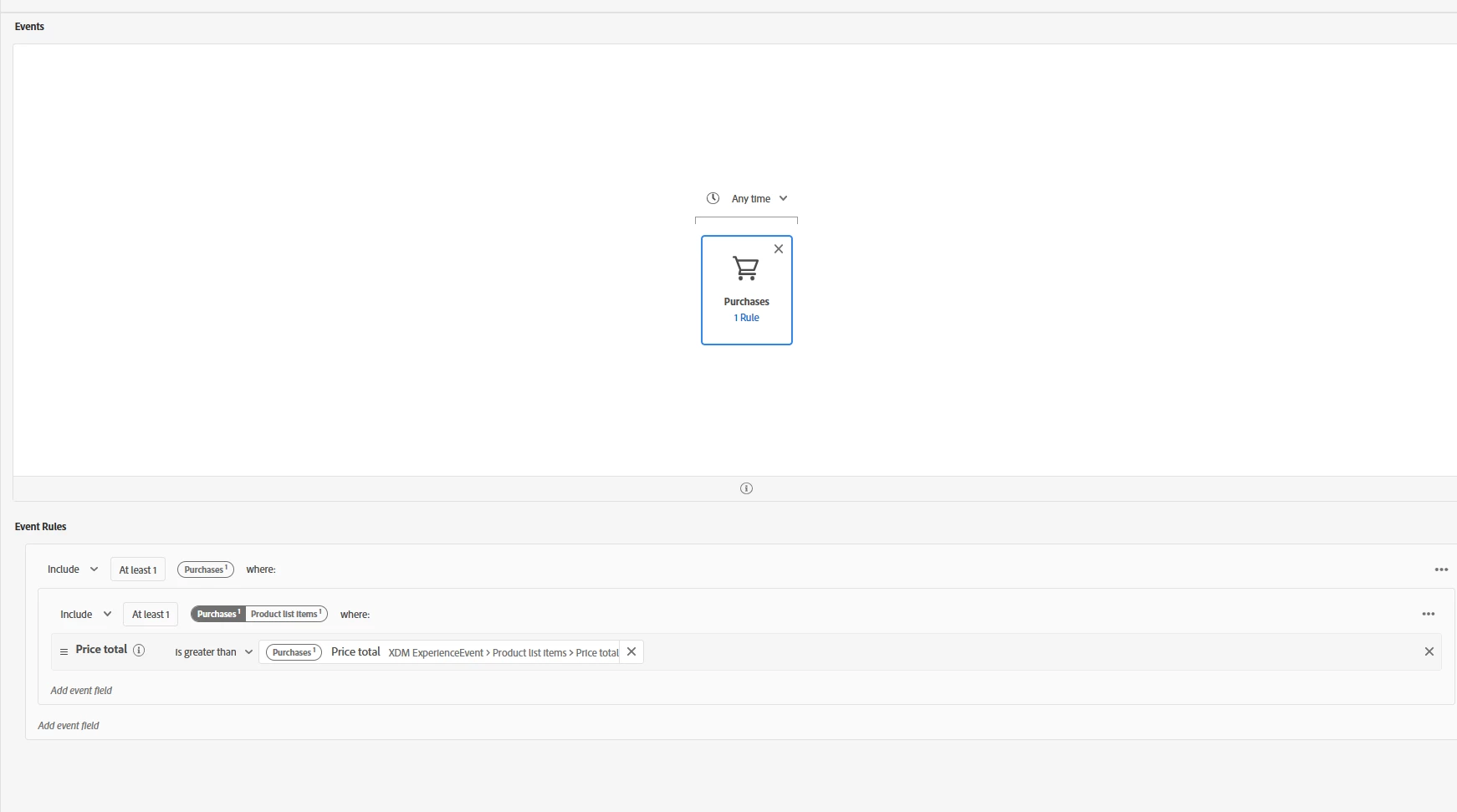 We are trying to creating a segment that are capturing customers choosing to a higher priceTotal plan. As you can see in the screenshot, the before price ($105) is captured and the after price ($125) is also captured. They are all in the same hit, and are experience events. Wondering if there's a way to capture customers that are upgrading?