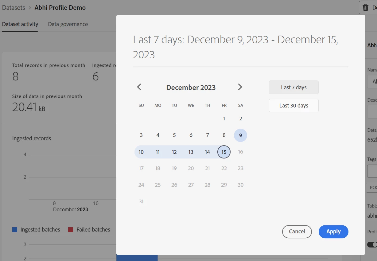 The records ingested before enabling the dataset are not part of that audience, which is fine.