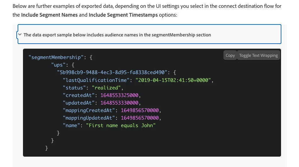 Looking for some support on whether it is possible to export the Audience Name in the records that would be sent to Kinesis via destination export in AEP. I understand you can add the Audience Name as part of the filename, but for this use case, we are looking to have the Audience Name in the actual file itself.
