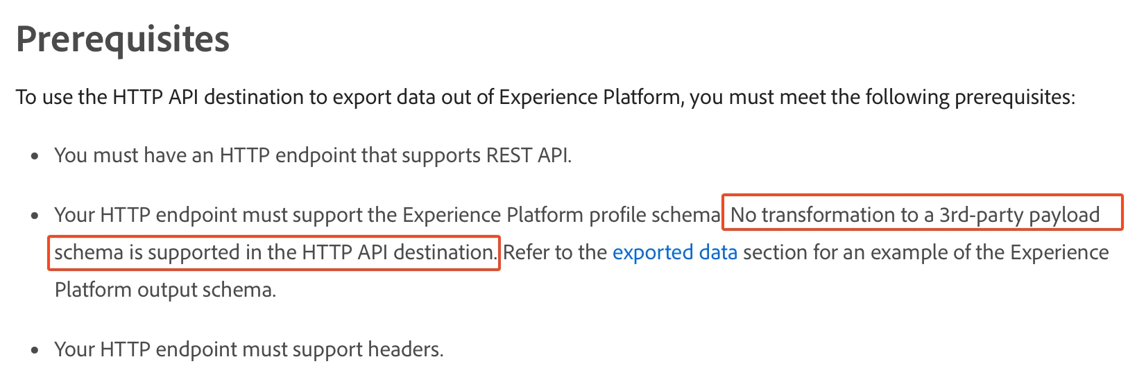- I can see that tin the HTTP API I can only chose atributes for the export, but I can't map them, so, is there a way to change the structure of the export? I took this info from the HTTP API docu: HTTP API connection | Adobe Experience Platform