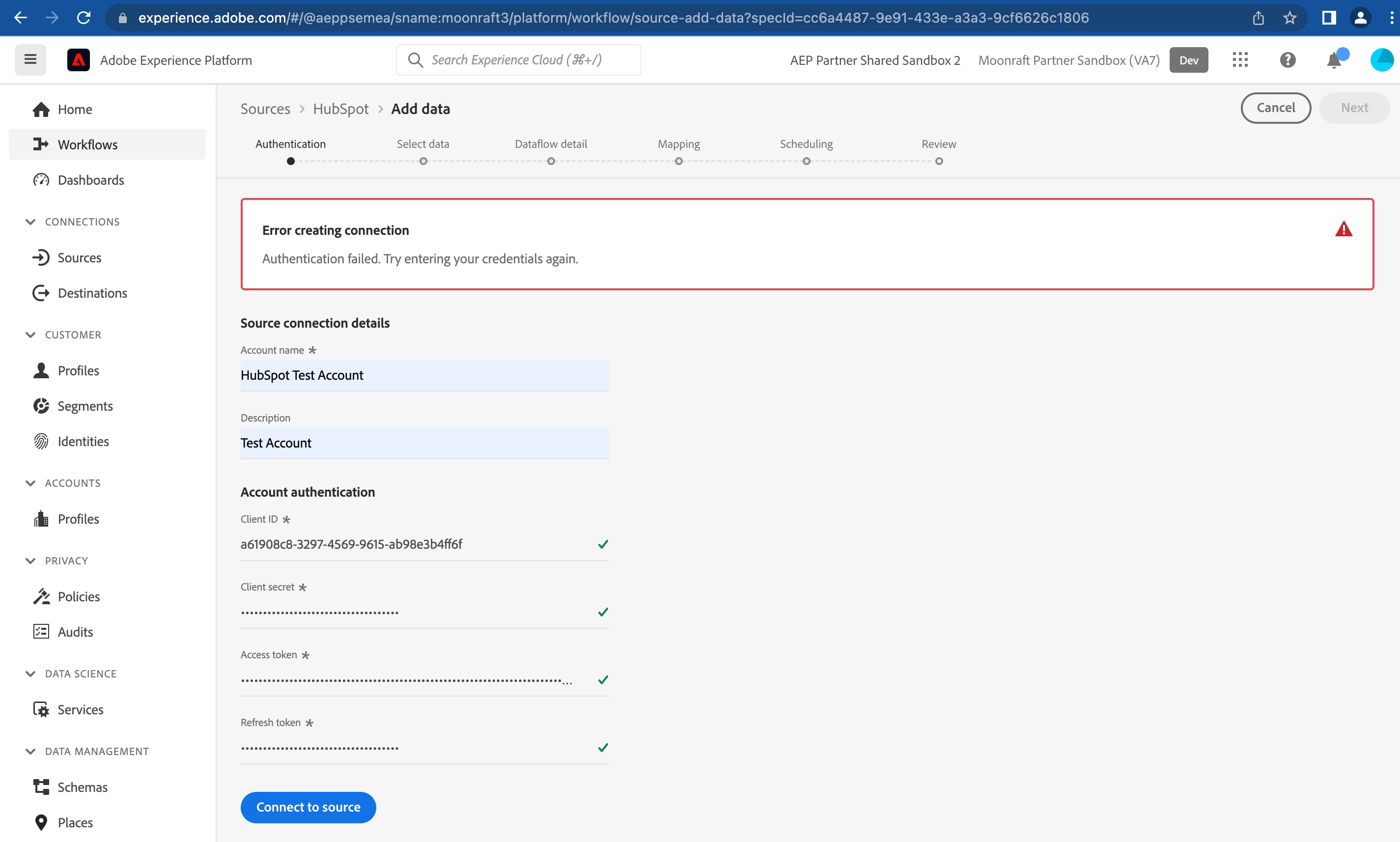 I am trying to get data from Hubspot to AEP. We have source connector in AEP to establish connection with Hubspot. Here is reference : https://experienceleague.adobe.com/docs/experience-platform/sources/connectors/marketing-automation/hubspot.html?lang=en
