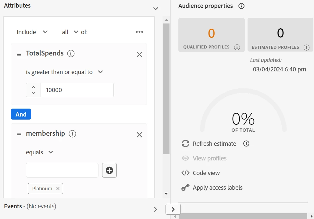 The total estimated audience count in the sandbox is 0, as shown in the screenshot. Check whether your Profile Snapshot dataset is getting refreshed daily. It happens only if you have ingested data in profile-enabled datasets.