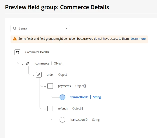 I have a "Purchase ID" and "Transaction ID" I need to be mapped in my Experience Event Schema. I don't see anywhere for the transaction ID? I see commerce.order.purchaseID in the schema but nothing for the "Transaction ID" Anyone know where this is supposed to be mapped to?