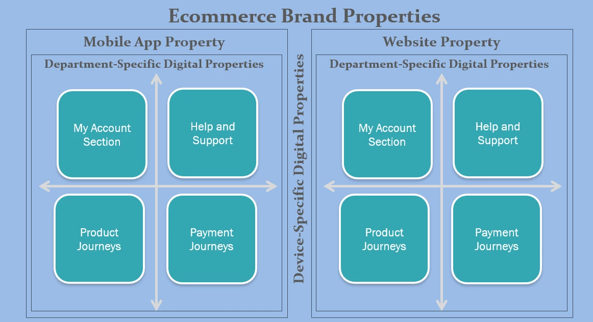 Multiple digital properties of an app or website refer to different versions or segments that serve unique purposes or audiences. For instance, an e-commerce brand might have: