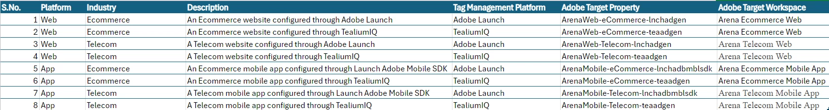 For example, when we need to create a Target activity for the Arena Ecommerce website where the configuration is done through Adobe Launch, we utilise the "Arena Ecommerce Web" workspace and create the activity using the Launch property within that workspace. This clear separation allows us to manage different configurations efficiently, without overlap or confusion.