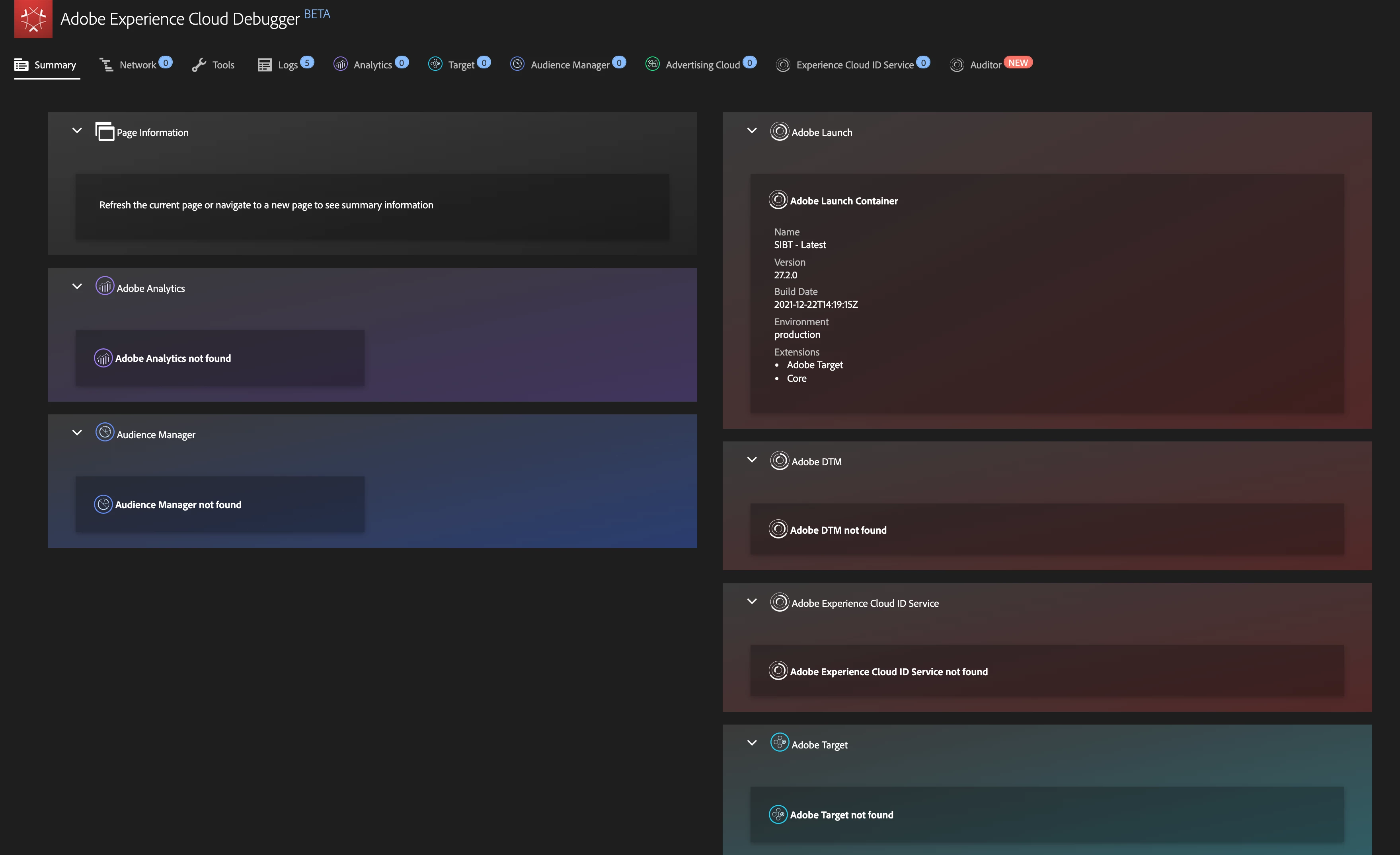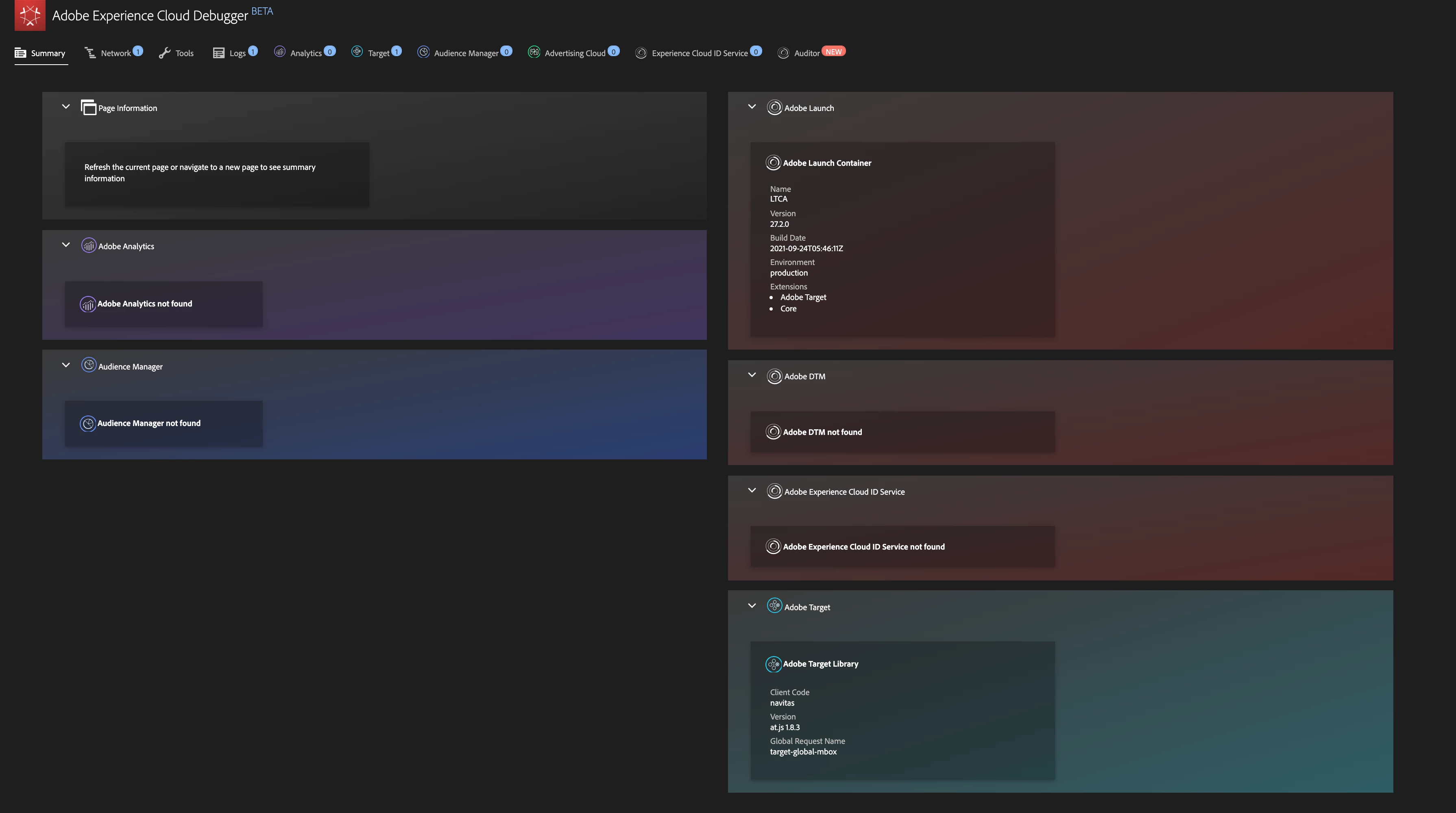 However Debugger is showing Adobe target not found....