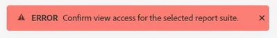 Since you have already confirmed access (You must be a member of the All Report Access group or member of a group that has access to at least one report in the report suite that you want to use) to the Report Suite if the error is still persisting, raise it with Customer Care.