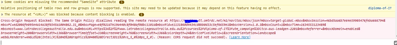 • Disabling the tracking protection reloads the site page and this time, with Target loaded successfully on it.