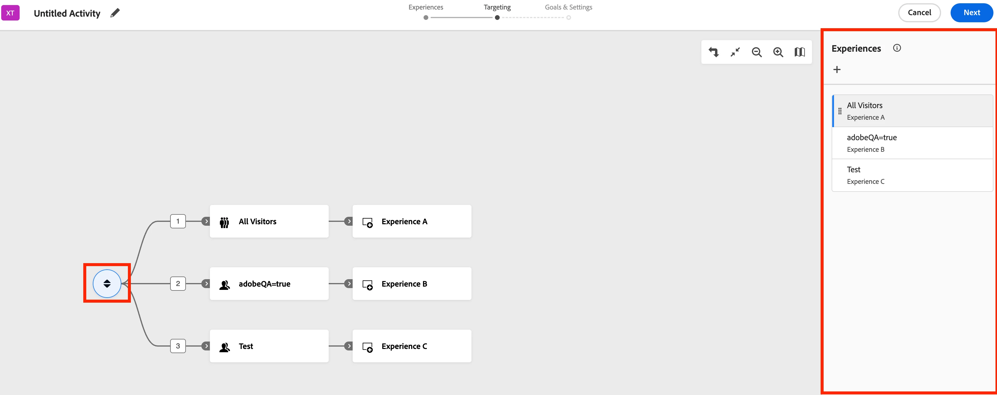 Does anyone know how to edit and rearrange the order of the audience/experience waterfall within an activity in the new UI?? Previously you could hold and drag them into a new order on the 'edit targeting' tab within the activity edit screen.