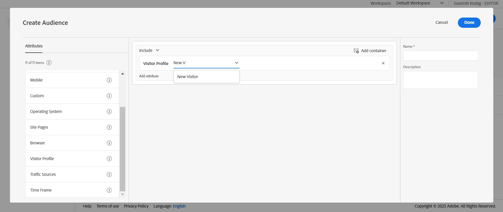 Find the New user for website using adobe target