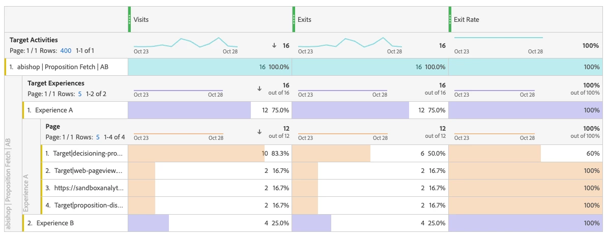 How to measure exit rate in A/B Activity based on Visits? | Community