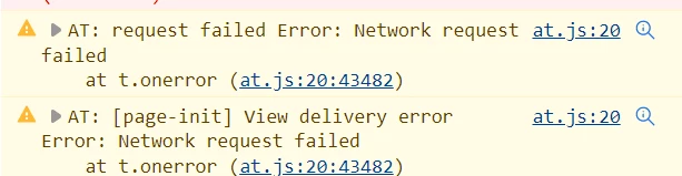 I'm working with a dev team to implement the at.js file on one of our sites and we keep seeing the "AT: request failed Error: Network request failed" and "AT: [page-init] View delivery error Error: Network Request failed" messages in the console of our dev environment, which is hosted behind a VPN.