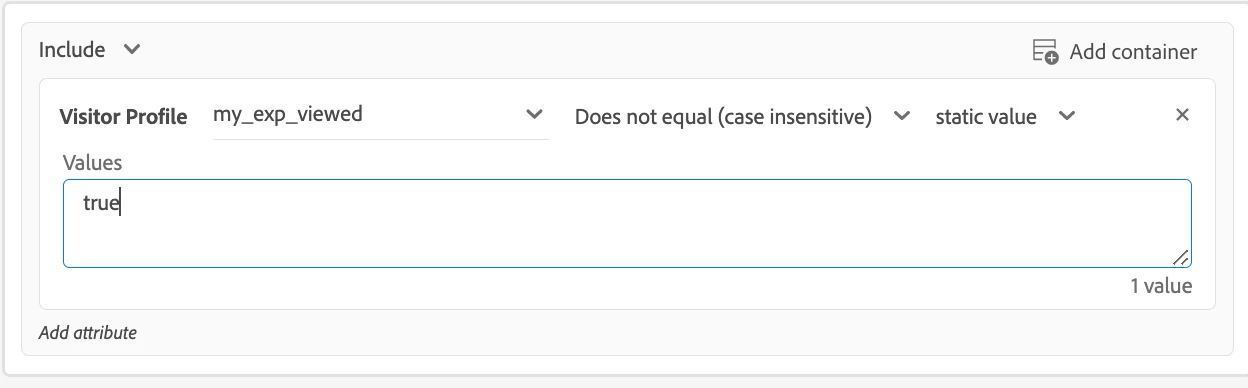 Step 3: Create an audience using this profile-attribute so that the experience is only shown when the value is not true