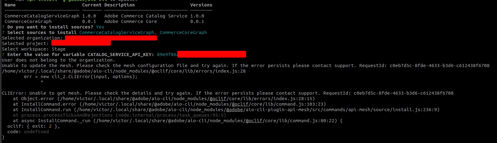 Error installing Mesh Source CommerceCatalogServiceGraph