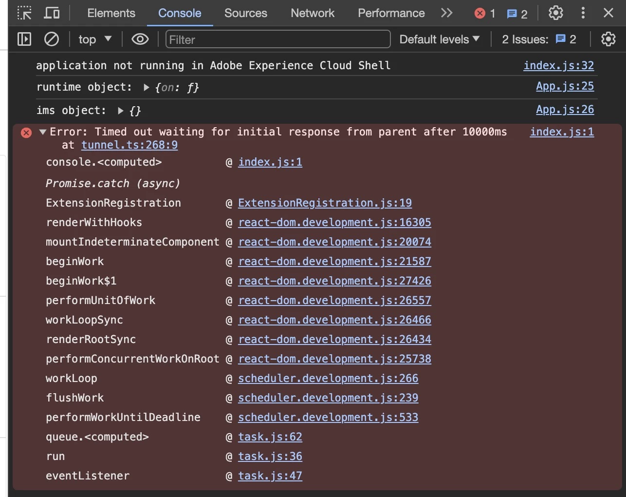 Getting Error: Timed out waiting for initial response from parent after 10000ms when trying to register an extension for Admin UI SDK