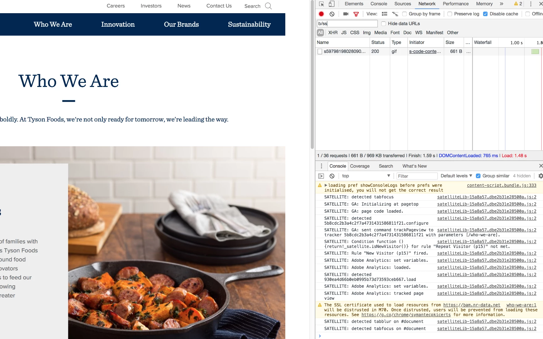 I just checked https://www.tysonfoods.com/who-we-are and am not seeing this issue, however, I may have the solution to the problem: