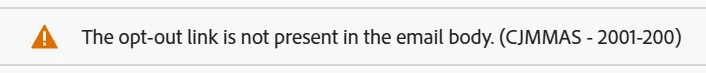 When we try to send emails from AJO we get this alert. Saying that the opt-out link is missing in the body.